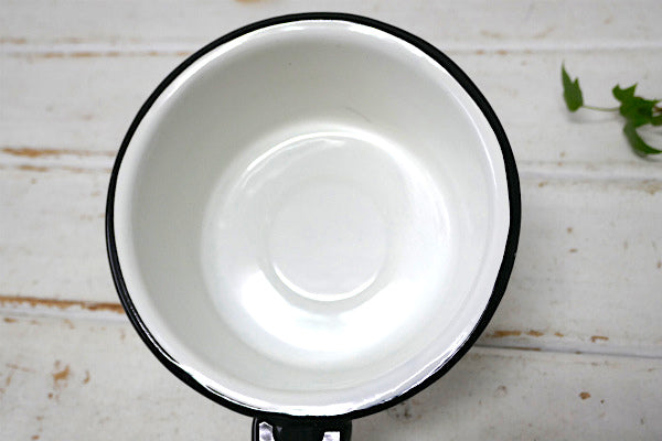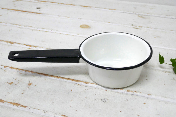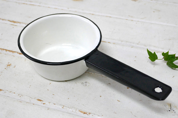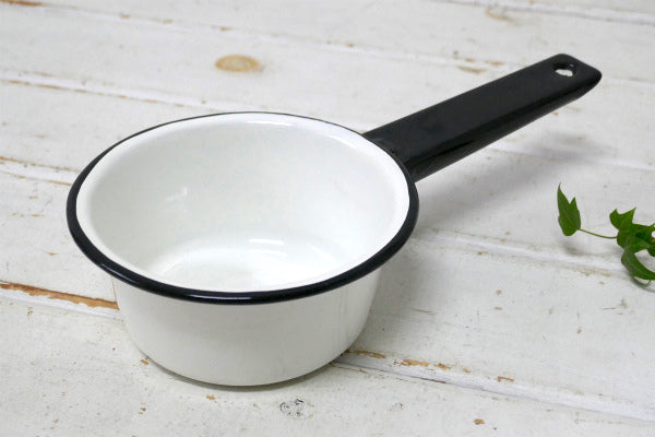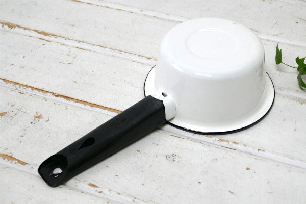 ホワイト×ブラック・ホーロー製・ヴィンテージ・ミルクパン・片手鍋・ソースパン・キャンプ・アウトドア