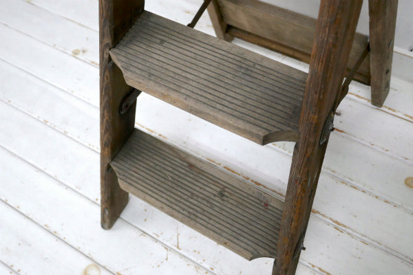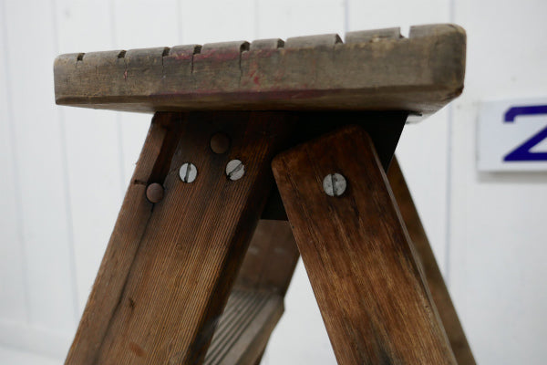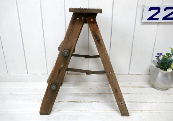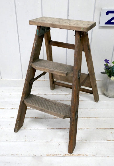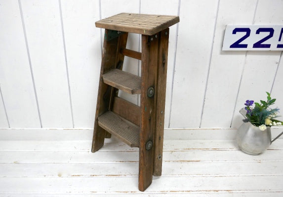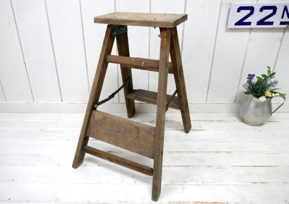 ノスタルジック・ペンキの付いたシャビーな木製・アンティーク・ステップラダー・脚立・ステップツール