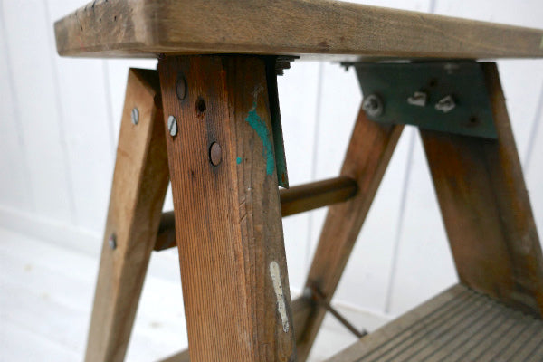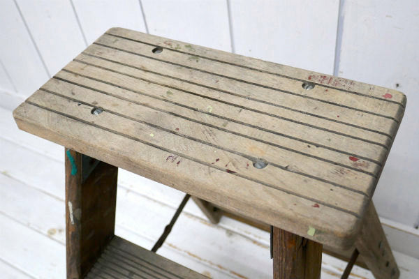 アメリカ西海岸・サンフランシスコで見つけました・・ペンキの付いた木製・アンティーク・ステップラダー(脚立)です。