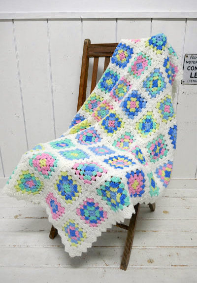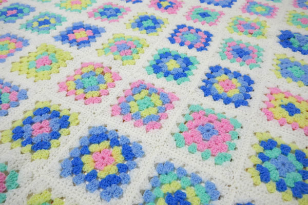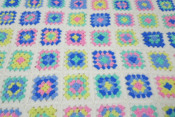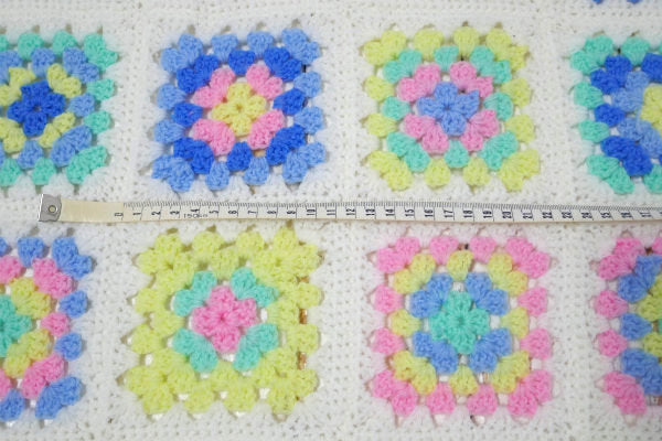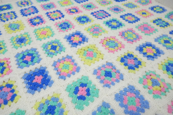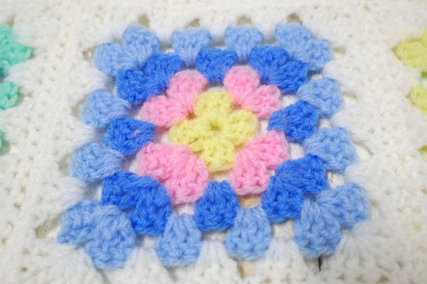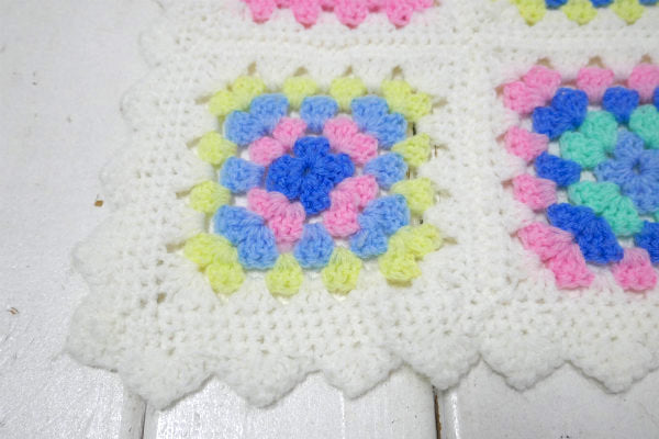 パステルカラー・ニット・モチーフ編み・ハンドメイド・ヴィンテージ・ブランケット・ベビーブランケット