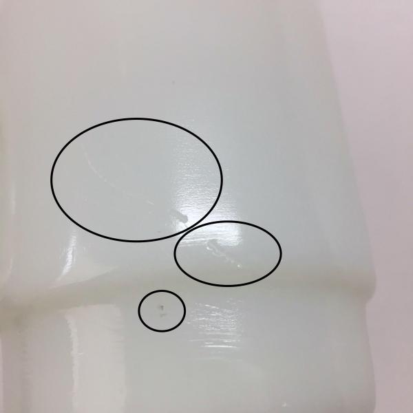 背面2箇所にキズ・製造時のヘアライン・1箇所に小さな着色が見られますが、内側の状態は良いです。