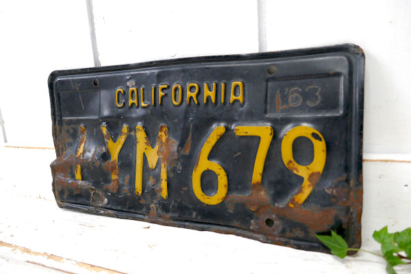 アメリカ西海岸・カリフォルニアで見つけました・・古き良きアメリカ1963年・"CALIFORNIA"ブラックカラー×イエロー ヴィンテージ・ナンバープレートです。