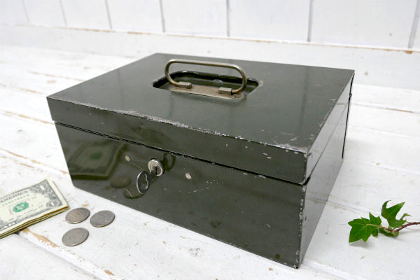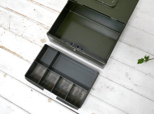 【ASCO】鍵付き・2段式・カーキ・メタル製・工業系・ヴィンテージ・キャッシュボックス・金庫 USA