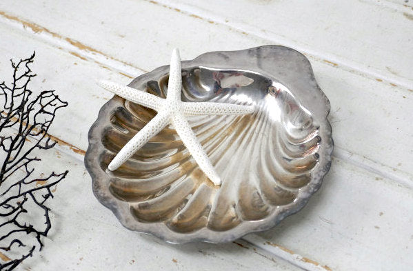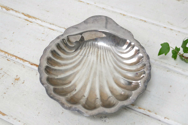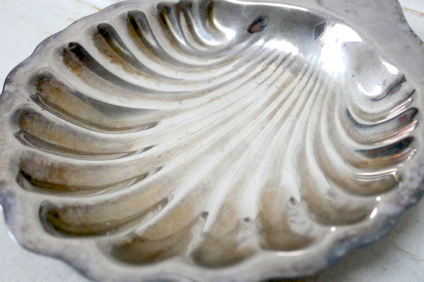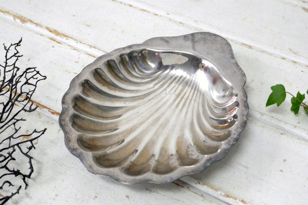 貝殻の形をしたエレガントなシルバープレート製のトレイです。