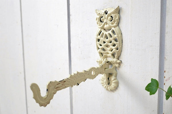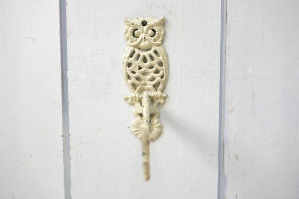 アメリカ中西部・シカゴで見つけました・・縁起物としても人気の高い幸せの鳥『フクロウ』のキャストアイアン製・スイング式・ヴィンテージ・ウォールフックです。
