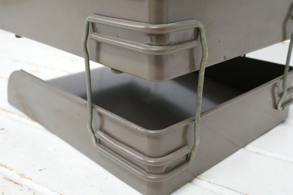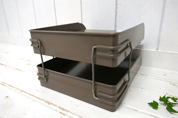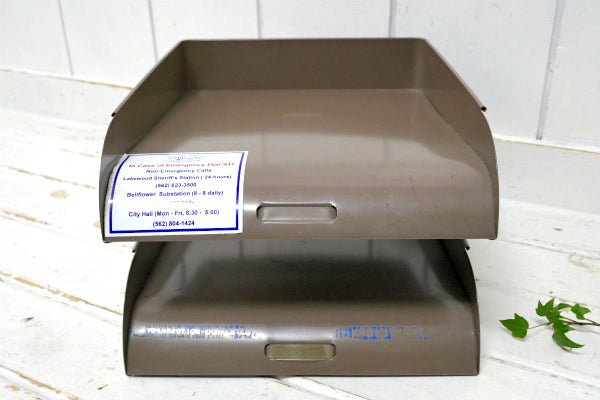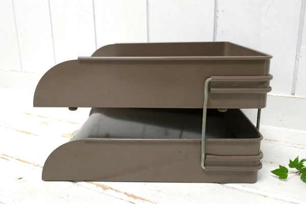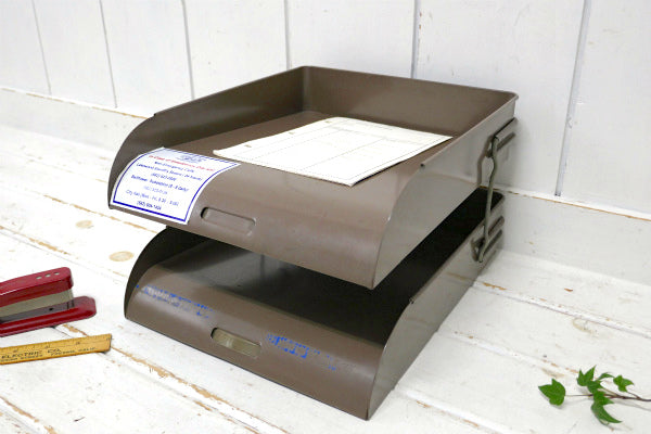 アメリカ西海岸、カリフォルニアで見つけました・・ブラウンカラーのメタル製・2段式・ヴィンテージ・デスクトレイです。