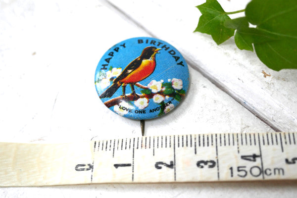 アメリカ合衆国、インディアナポリスで見つけました・・ ”HAPPY BIRTHDAY/LOVE ONE ANOTHER/ABINGDON”誕生日メッセージ・ヴィンテージ・缶バッジです。
