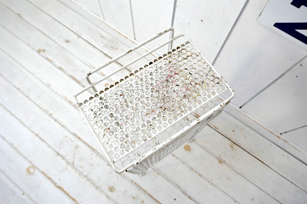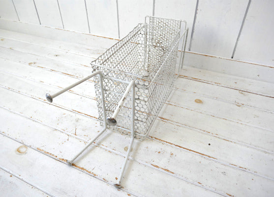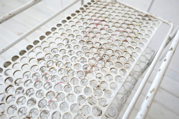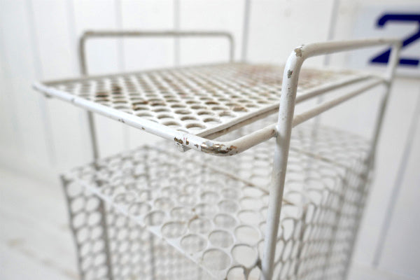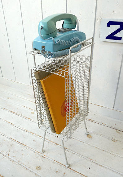 ミッドセンチュリー・ホワイト・メッシュ・メタル製・ヴィンテージ・テレフォンスタンド・マガジンスタンド