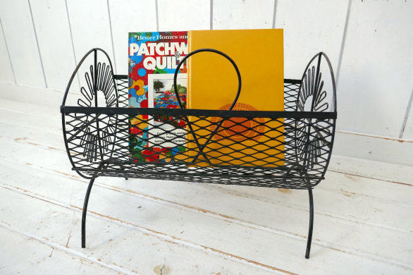 アメリカ西海岸・カリフォルニア州で見つけました・・ブラックカラーのメタル製・ワイヤー・ヴィンテージ・マガジンラックです。
