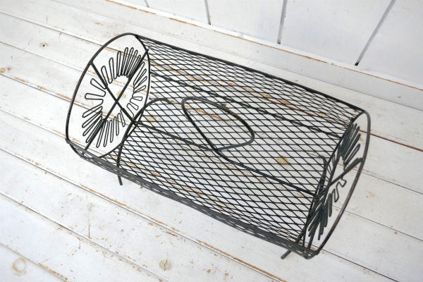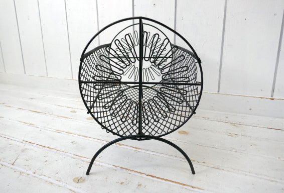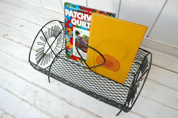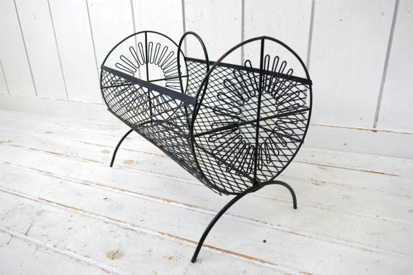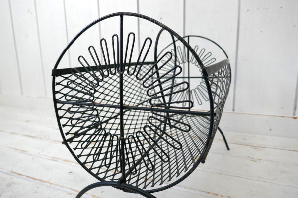 ミッドセンチュリー・アトミックデザイン・ブラック・ヴィンテージ・マガジンラック・ワイヤーラック