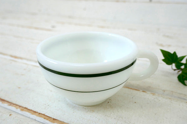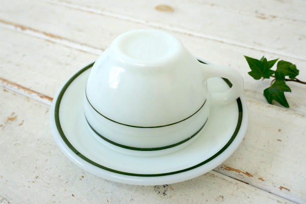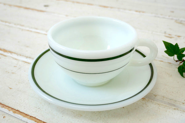 アメリカ西海岸・サクラメントで見つけました・・『オールドパイレックス×コーニング』のミルクガラス製・グリーンライン・ヴィンテージ・カップ&ソーサーです。