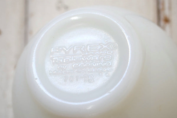 バックスタンプは、カップ裏は【PYREX ® BRAND Tableware by CORNING MADE IN U.S.A. 701-16】、ソーサー裏は【PYREX ® BRAND Tableware by CORNING MADE IN U.S.A. 702-19】です。