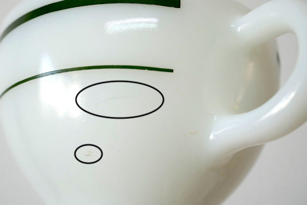 白色ミルクガラスの温かみあるボディに、深緑色のラインが入っており、ミッドセンチュリー時代のモダンなデザインです。