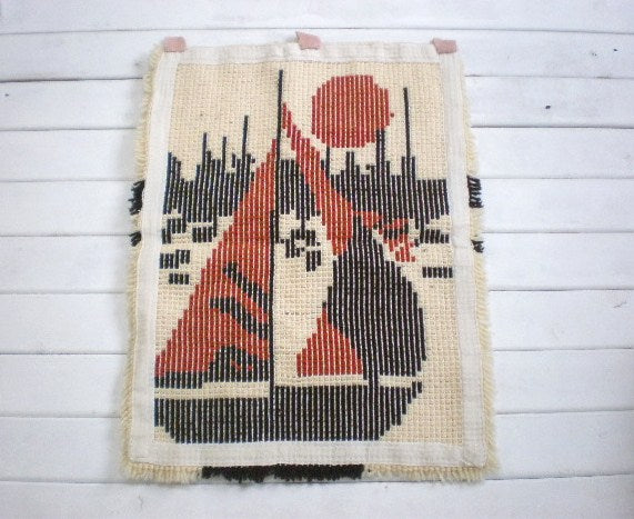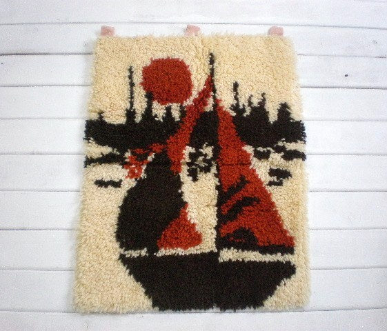 カリフォルニアでみつけました・・ヨット&夕日の70’sヴィンテージ・フックドラグ・タペストリーです。