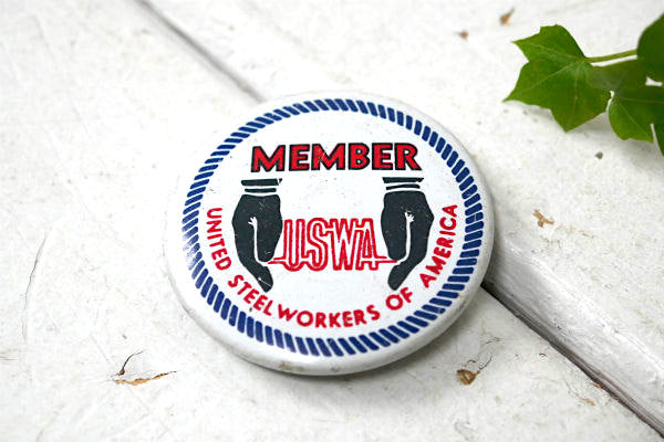 USWA 全米鉄鋼労組 ヴィンテージ・メンバー・缶バッジ MADE IN USA デッドストック