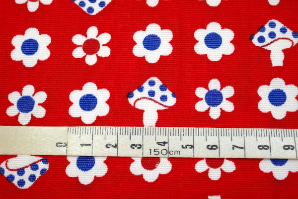 レトロポップ フラワー 花柄 キノコ 70s デッドストック ヴィンテージ ファブリック 生地 テキスタイル
