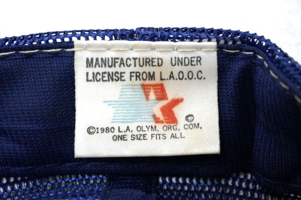 キャップ内側タグに【MANUFACTURED UNDER LICENSE FROM L.A. O.O.C. / ©1980 L,A, OLYM, ORG, COM, ONE SIZE FITS ALL】とございます。
