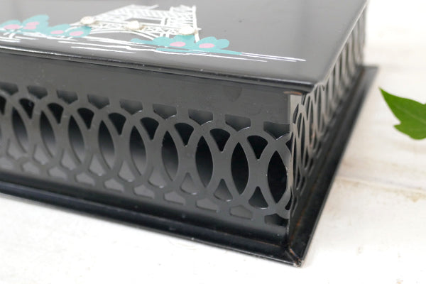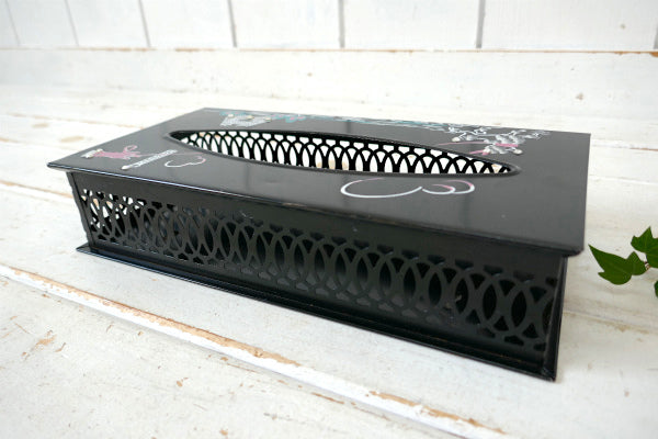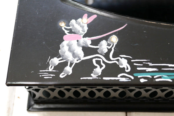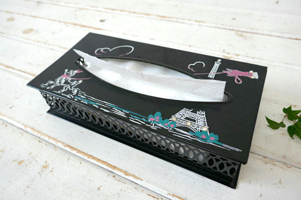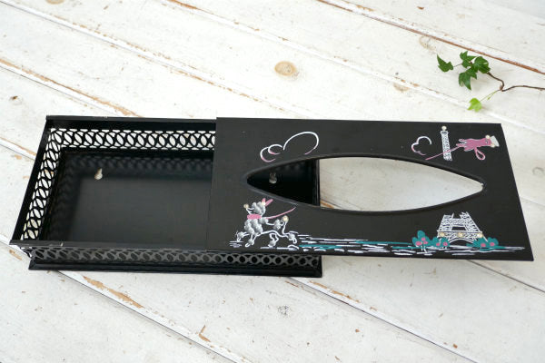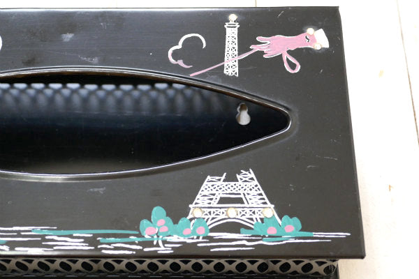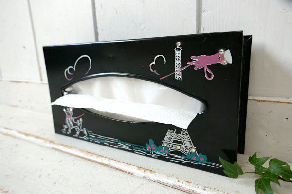 アメリカ中西部・シカゴで見つけました・・プードル&エッフェル塔が描かれた、黒色メタル製・ヴィンテージ・ティッシュペーパー ホルダーです。