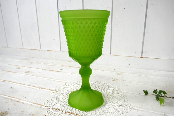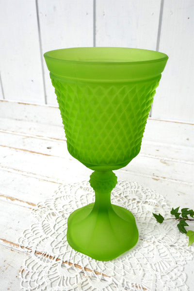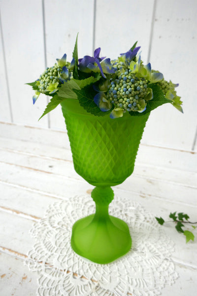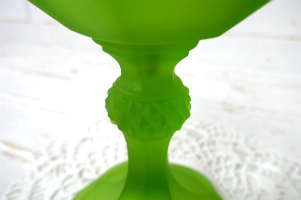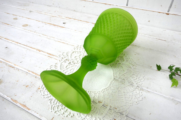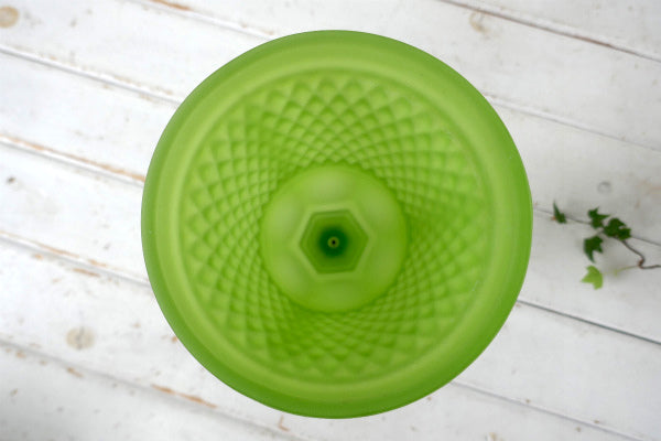 USA 擦りガラス グリーン・ガラス・ヴィンテージ・フラワーベース 花瓶 脚付き