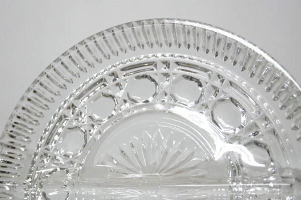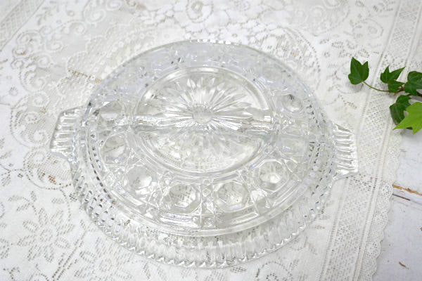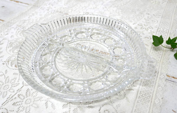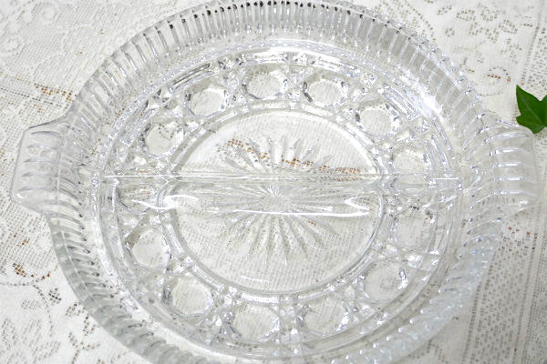 アメリカ西海岸・サンフランシスコで見つけました・・『Indiana Glass』のクリアのプレスガラス製・2コンパートメント・ヴィンテージ・プレート(仕切プレート)です。