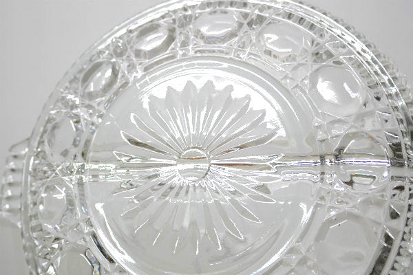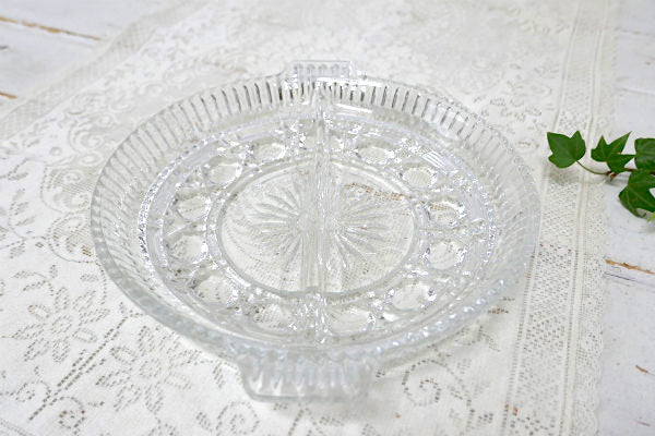 インディアナグラス 花柄 プレスガラス 仕切り付き ヴィンテージ トレイ サービングディッシュ 皿