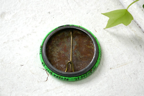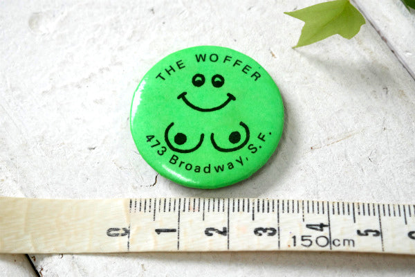 アメリカ西海岸・カリフォルニアで見つけました・・” スマイル・THE WOFFER ヌード ”サンフランシスコ・ブロードウェイ・ヴィンテージ・グリーン・缶バッジです。
