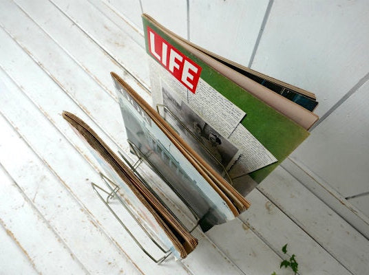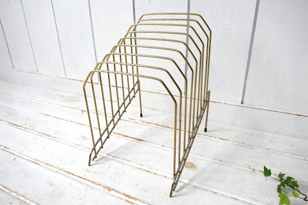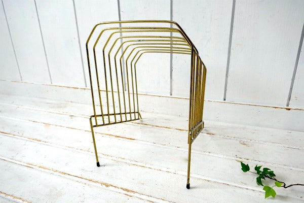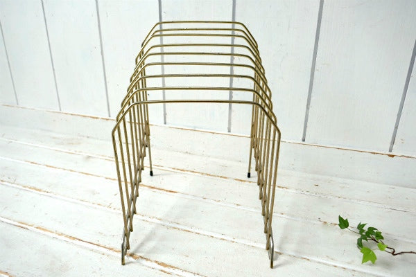 ミッドセンチュリー ゴールドトーン 階段式 8列 ヴィンテージ ファイルスタンド マガジンスタンド