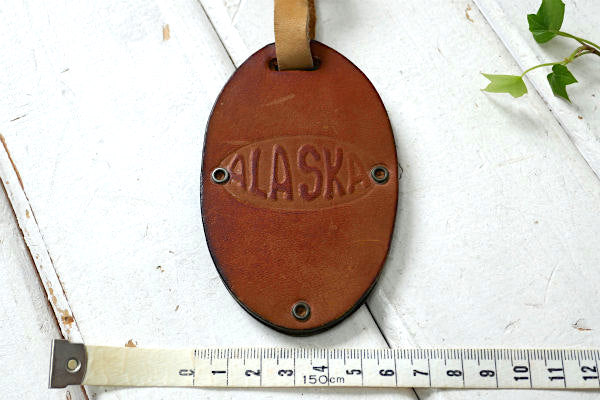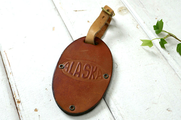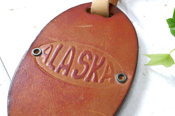 アメリカ西海岸・カリフォルニア・サクラメントで見つけました・・ALASKA エアーライン・航空会社・ヴィンテージ・スーツケース用・レザー・ネームタグ(名札・革製品)です。