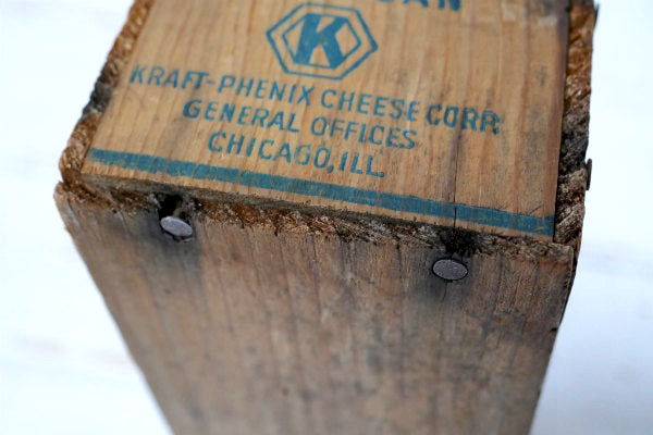 アメリカ合衆国で見つけました・・1903年にイリノイ州で誕生した歴史ある食品メーカー『クラフト社』の木製・アンティーク・チーズボックスです。