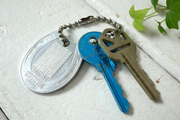 アメリカ西海岸・カリフォルニアで見つけました・・馬の蹄鉄"ラスベガス Binions HORSESHOE LAS VEGAS ホテル&カジノ"ボールチェーン付き・古鍵2本付きアドバタイジング・キーホルダーです。