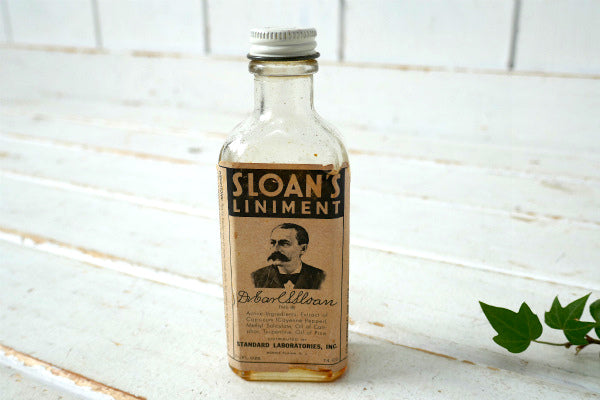 SLOANS LINIMENT・透明・50's ヴィンテージ ガラスボトル 薬瓶 ガラス瓶 USA