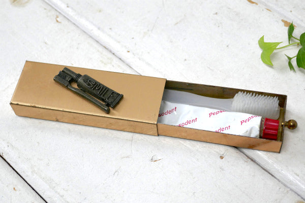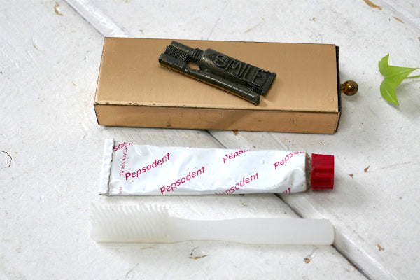 ゴールドトーン トラベル用 歯ブラシ&歯磨き粉入り 50's ヴィンテージ 歯磨きセット USA