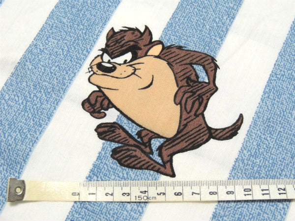 アメリカ西海岸・カリフォルニア州で見つけました・・ワーナーブラザーズを代表するアニメ『ルーニーテューンズ』のストライプ・デニム柄・USEDフラットシーツ(ハーフサイズ)です。 ツインサイズのフラットシーツを半分にカットしたハーフサイズ・シーツになります。 ルーニーテューンズの人気キャラクター【トゥイーティー】【バッグスバニー】【シルベスター】【ダフィーダック】【タスマニアンデビル】の総柄プリントです。 MADE IN U.S.A. 30% コットン・70% ポリエステル製 キャラクター生地として、お洋服やバッグ・小物などのリメイク&ハンドメイド素材に・・♪ ※フラットシーツの状態でもご注文いただけます。 その場合はご注文の際に数量を【2】とお願い致します。 プリントの発色良く、生地もしっかりしておりますが、1部に小さな色抜け箇所がございますが、その他に特に目立ったヨゴレ等のダメージはございません。 日本国内にてお洗濯済みです。 画像(写真)でのご判断を宜しくお願い致します。 ■SIZE :約 W170cm×H122(244)cm ()はフラットシーツの場合    ■コンディション : ★★★★☆ ■レターパックライト¥370対応可(追跡サービスあり・補償なし) ※ご注文の際、お手数ですがメッセージ欄に『レターパックライト希望』とご記入下さい。新たにお見積もりをメールにてお知らせさせていただきます。