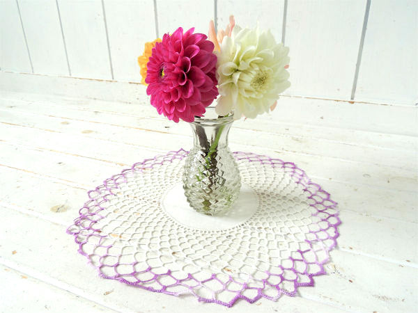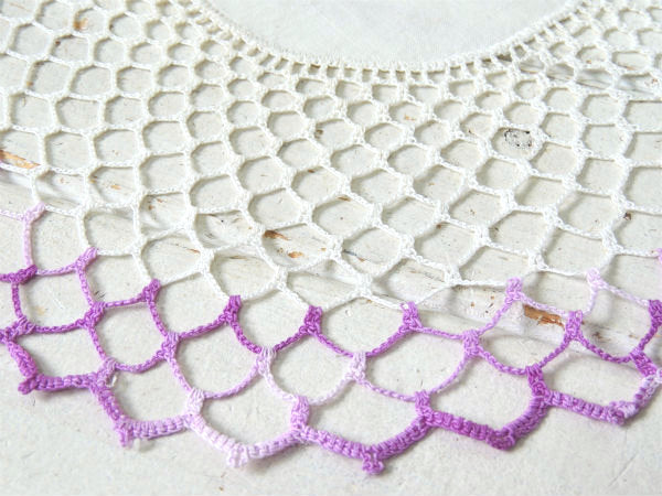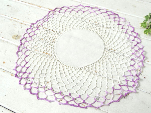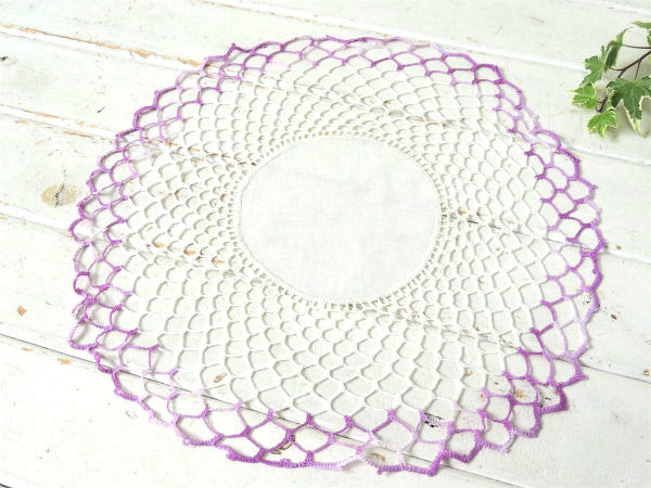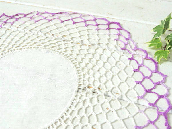 パープルグラデーション クロシェレース 手編み デッドストック アンティーク ドイリー 大判 ハンドメイド USA