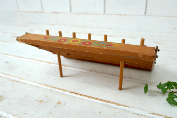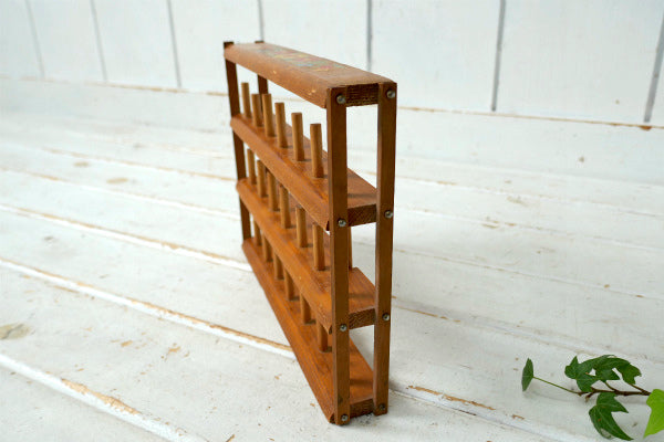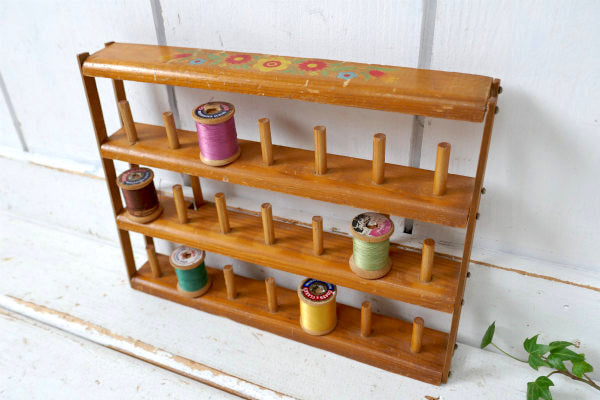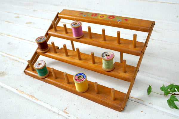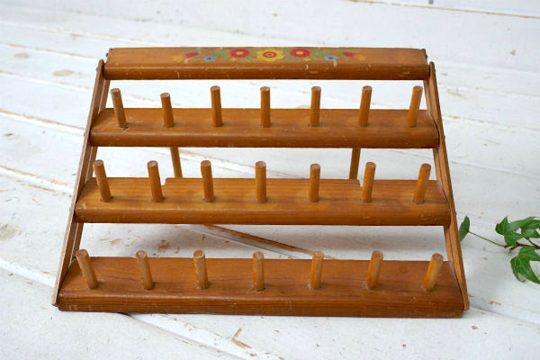 花柄 木製 折り畳み式 ヴィンテージ スプールホルダー 糸巻きホルダー スプールラック 手芸 USA