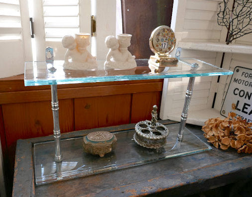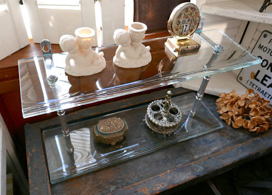 アメリカ西海岸・サンフランシスコで見つけました・・ガラス製×メタル製の2段式・ヴィンテージ・ウォールシェルフ(飾り棚)です。