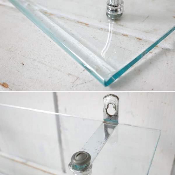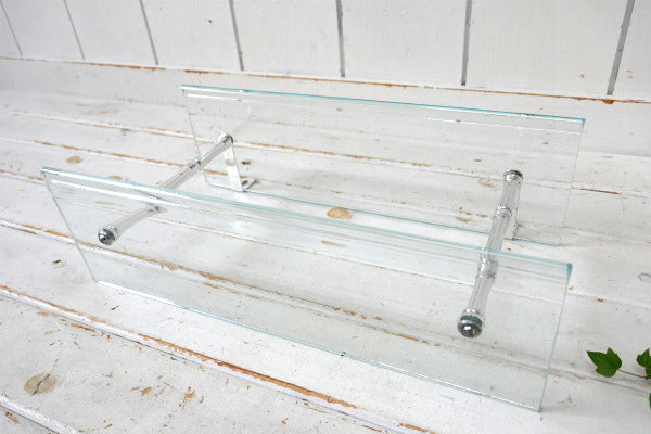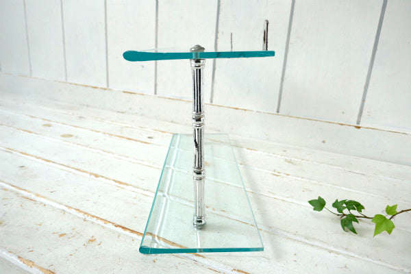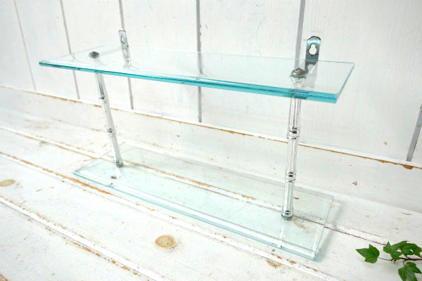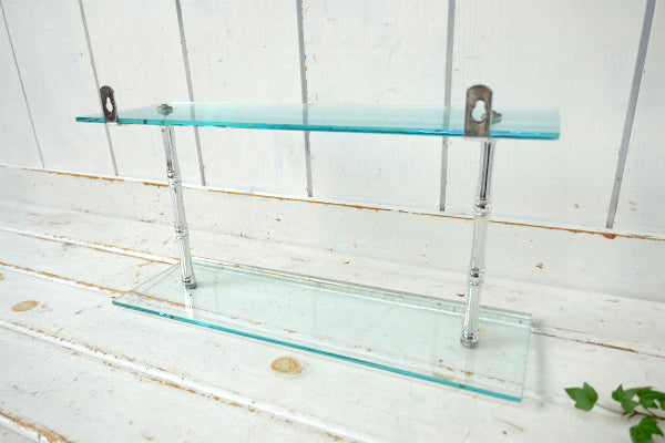 ミッドセンチュリー ガラス製×メタル製 2段式 ヴィンテージ ウォールシェルフ 飾り棚 シェルフ