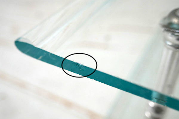 経年による多少のヨゴレ・スリキズ・金具サビ・ガラス棚板のサイドに数ミリの欠け箇所等ございます。
