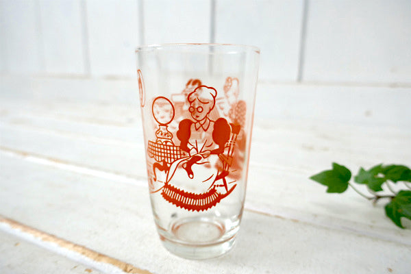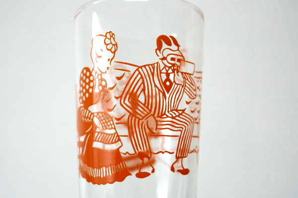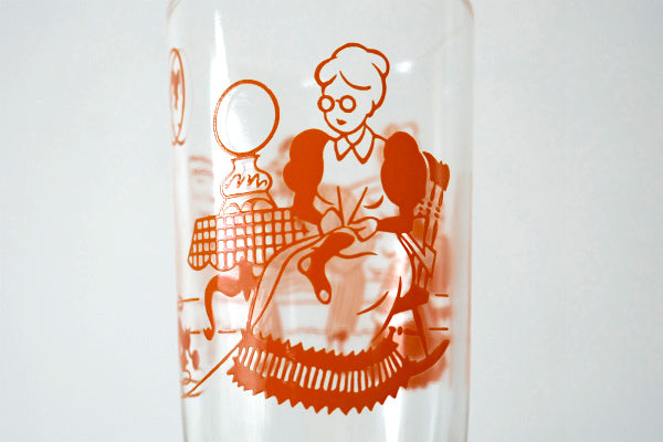 ロッキングチェアに座って編み物をしたり、ドレス&クールなスーツ姿の男女など、当時のアメリカの様子が描かれたレトロ可愛いデザインです。