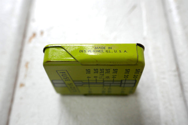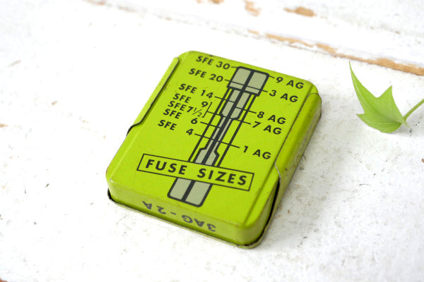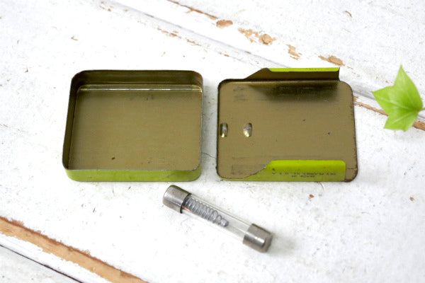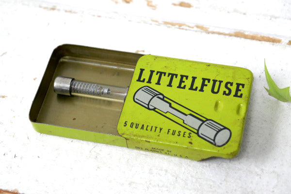 アメリカ西海岸・カリフォルニアで見つけました・・【LITTLE FUSES 5QUALITY FUSES FUSE SIZES 3AG-2A】小さなヴィンテージ・ヒューズ缶(ヒューズ入り)です。