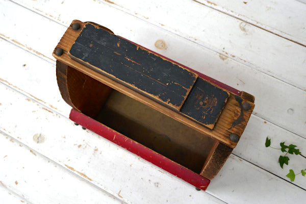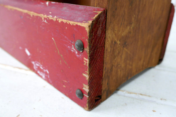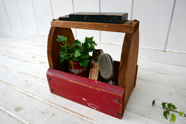 アメリカ中西部・シカゴで見つけました・・赤色のペイントが施された木製のヴィンテージ・シューケアボックスです。