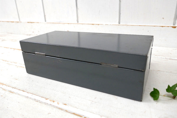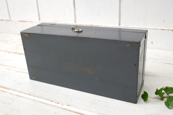 工業系 ダークグレー スチール製 ヴィンテージ キャッシュボックス 金庫 ツールケース 工具箱