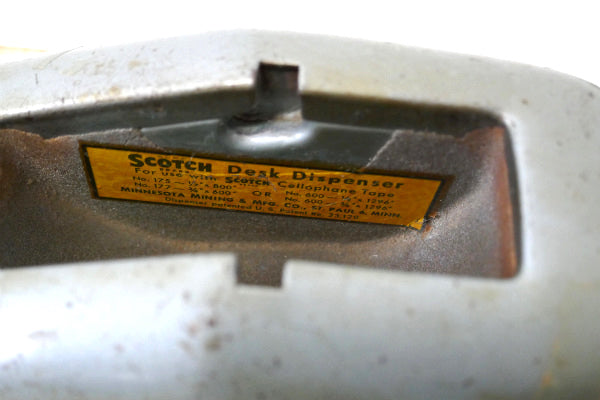 アメリカ中西部・シカゴ郊外で見つけました・・・インダストリアル・工業系の雰囲気漂うメタル製の小さなヴィンテージ・Scotch DESK DISPENSER テープカッター(メタリックカラー)です。