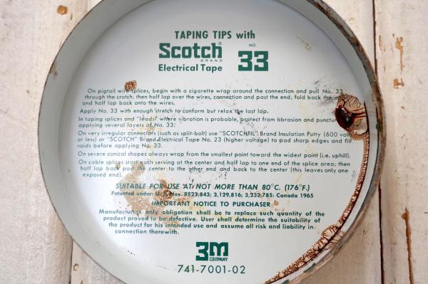 アメリカ中西部・シカゴで見つけました・・“3M COMPANY”の『Scotch Electrical Tape No.33』のティン製・ヴィンテージ・テープ缶です。