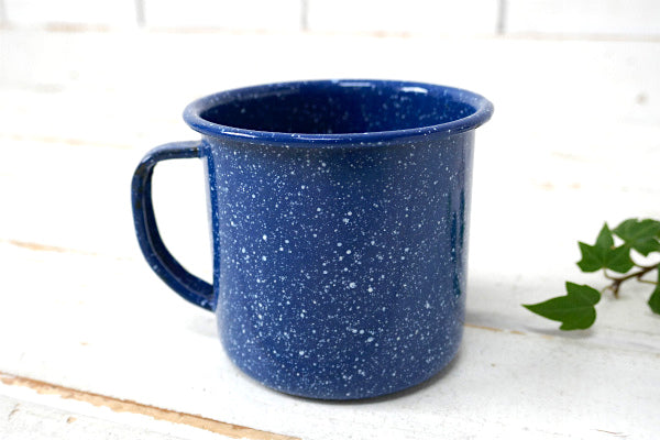 ブルー×ホワイト 琺瑯 ヴィンテージ ホーローカップ エナメルウェア アウトドア キャンプ