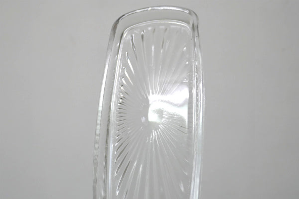 内側に、キラキラと光の反射が美しい放射線状の模様入りガラス製トレイが入っており、取り出し可能です。