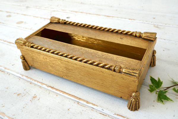 タッセルモチーフ ゴールドトーン ヴィンテージ ティッシュケース ティッシュボックス ハリウッド