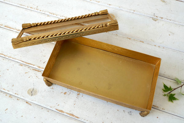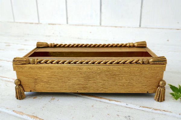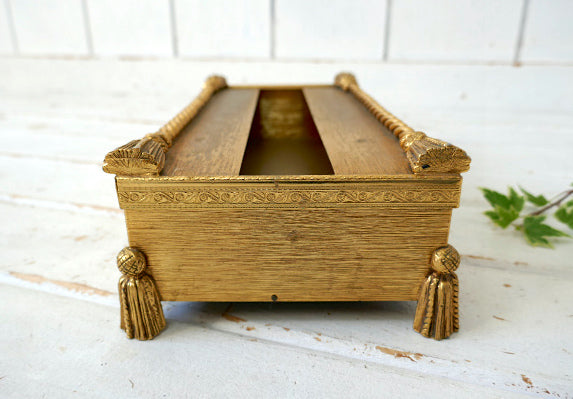 アメリカ西海岸・サンフランシスコで見つけました・・タッセルモチーフのゴールドトーン・メタル製・ヴィンテージ・脚付きティッシュペーパーケースです。