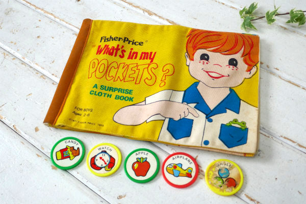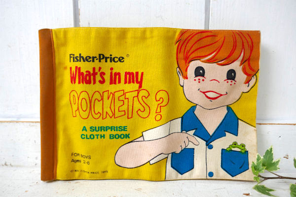 アメリカ中西部・シカゴで見つけました・・1930年に誕生したアメリカの玩具メーカー『フィッシャープライス社』の1971年・布製・ヴィンテージ・絵本(ラグブック)です。 タイトルは【What's in my POCKETS?(僕のポケットには何が入っているでしょう?)】です。 お子様が、実際に色々な種類のポケットやジッパー・スナップボタンを開けて、楽しみながら単語のお勉強ができる、カラフルで可愛い学習絵本になります。 絵柄入りのコインは【APPLE】【CANDY】【WATCH】【AIRPLANE】【MARBLES】の5枚付属いたします。 ※3枚欠品しています。 表紙に【Fisher-price ® What's in my POCKETS? A SURPRISE CLOTH BOOK FOR BOYS Ages 2-6 ©1971 FISHER・PRICE TOYS】とございます。 見ているだけでも楽しくなる、とっても可愛い絵本です♪ お子様のオモチャ・・お部屋のインテリア・・コレクションなどに・・♪ 経年により多少のヨゴレが見られます。 画像(写真)でのご判断を宜しくお願い致します。 ■全8ページ ■FISHER・PRICE TOYS ■W27.3cm×H18.4cm ■コンディション : ★★★★☆ ■レターパックプラス¥370対応可(追跡サービスあり・補償なし) ※ご注文の際、お手数ですがメッセージ欄に『レターパックライト希望』とご記入下さい。新たにお見積もりをメールにてお知らせさせていただきます。