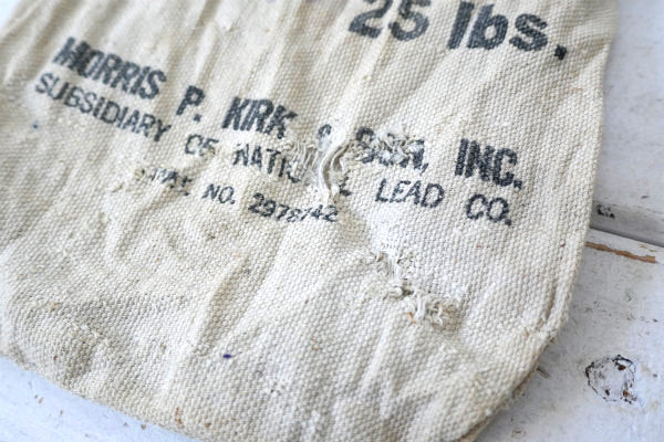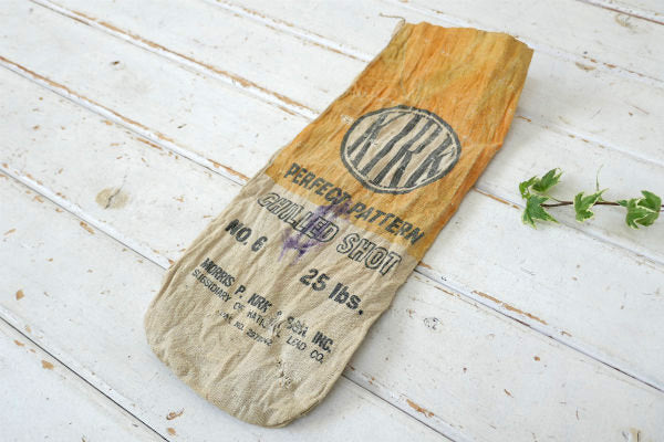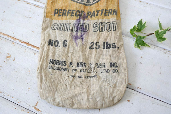 袋に【KIRK PERFECT PATTERN CHILLED SHOT NO.6 25 lbs, MORRIS P. KIRK & SONS, INC, SUBSIDIARY OF NATIONAL LEAD Co PAT N0. 2978742】のプリントが入っています。